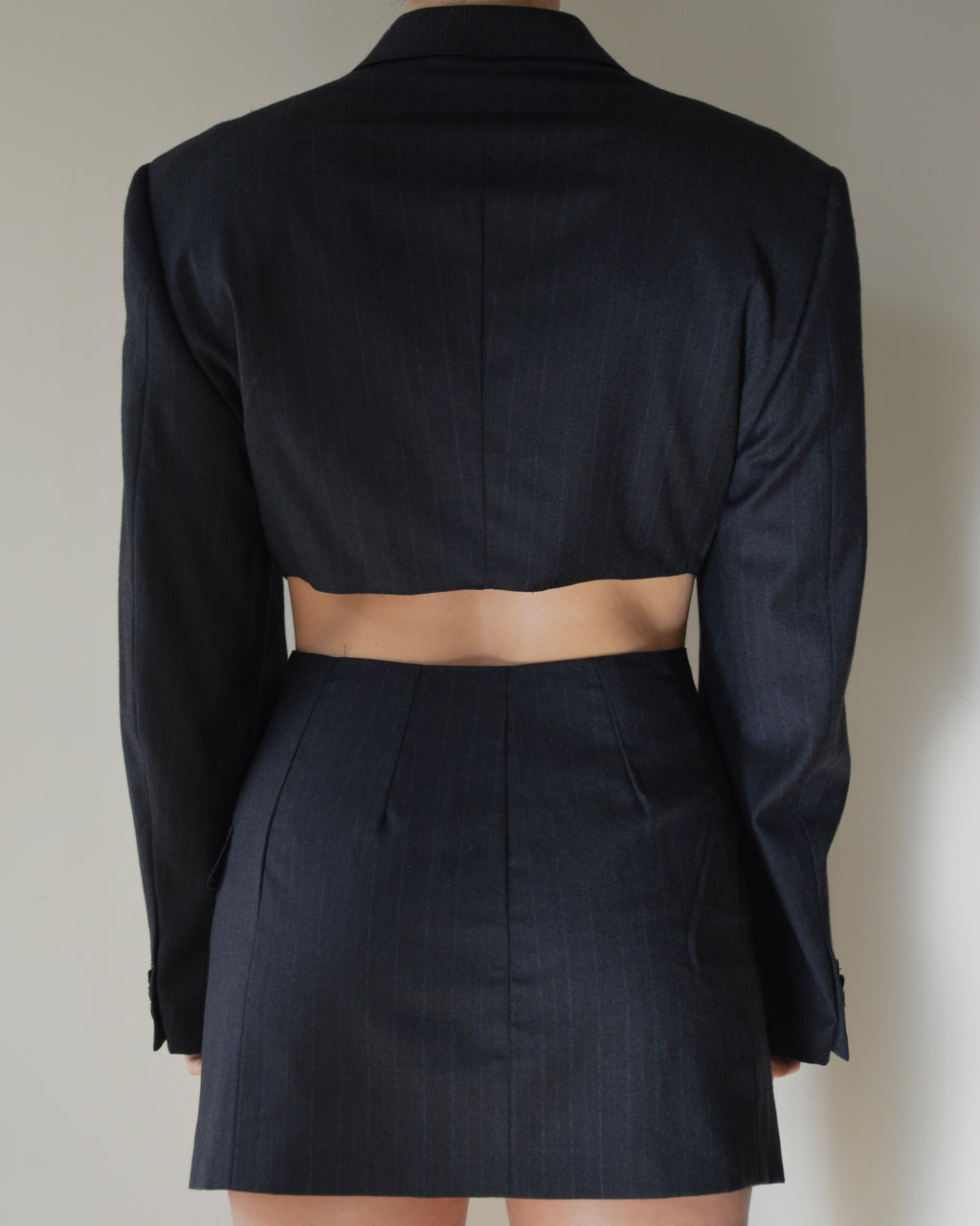 Blaset único elaborado a mano a partir de un traje de hombre existente.