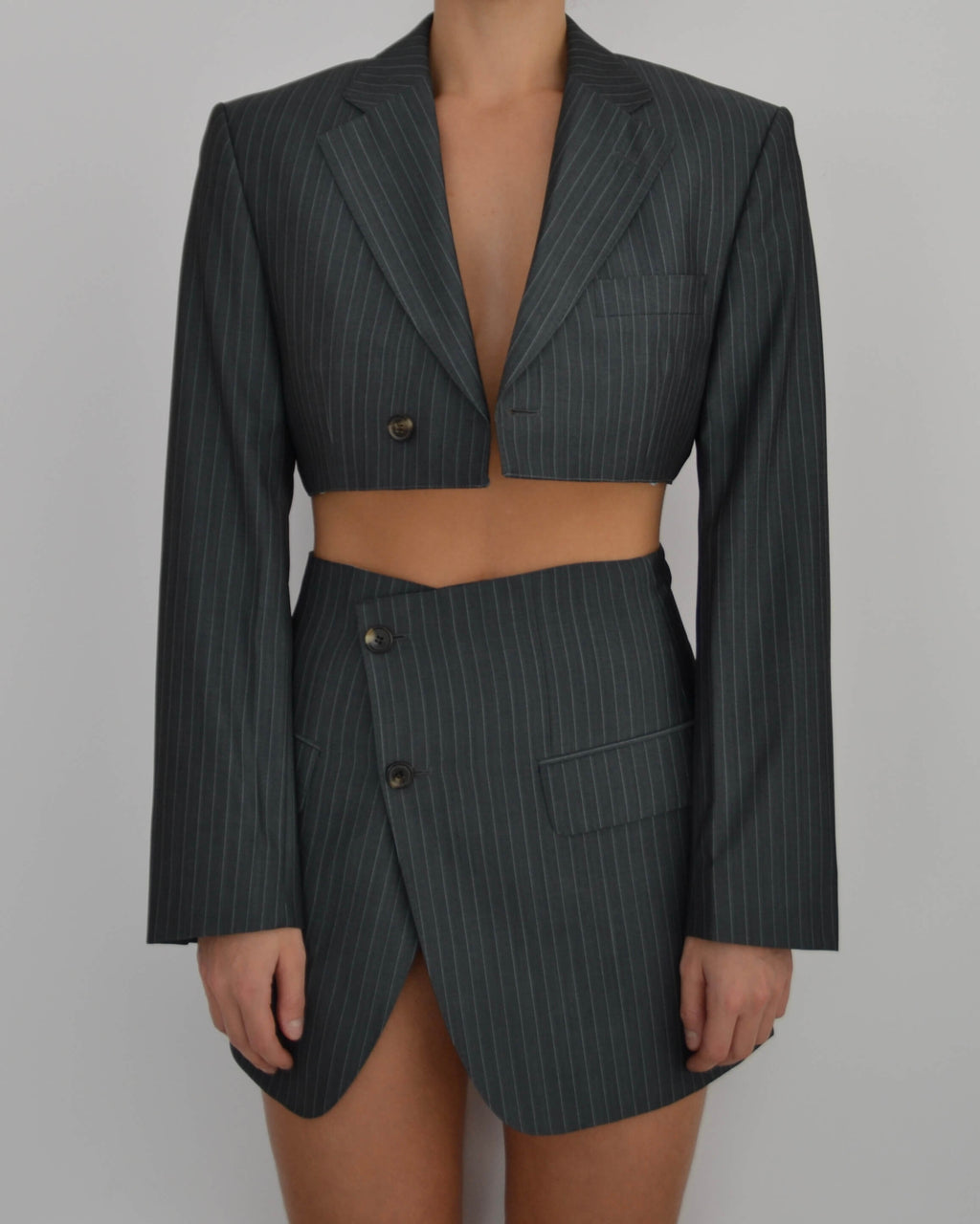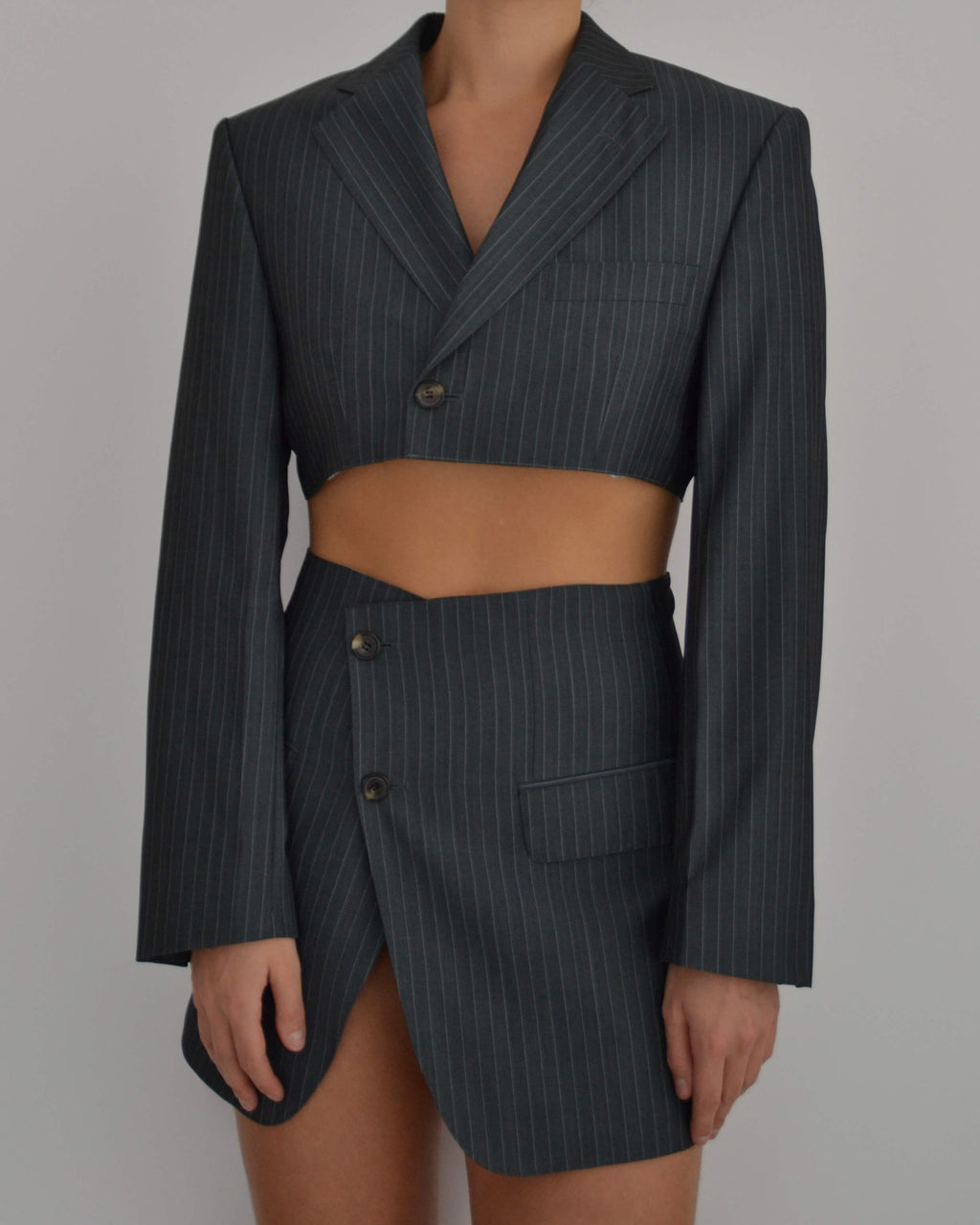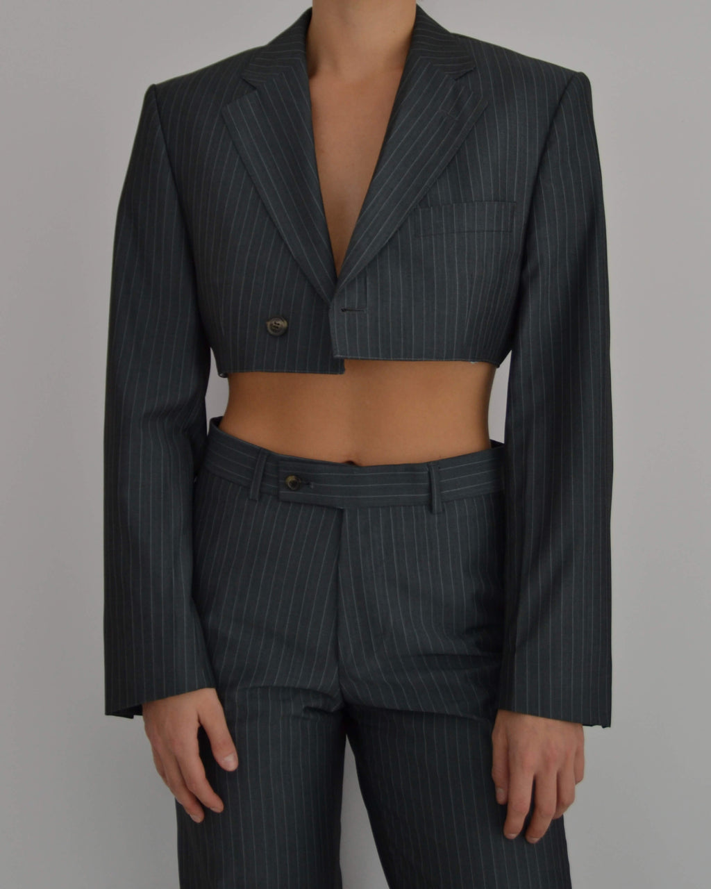 Blaset único elaborado a mano a partir de un traje de hombre existente.