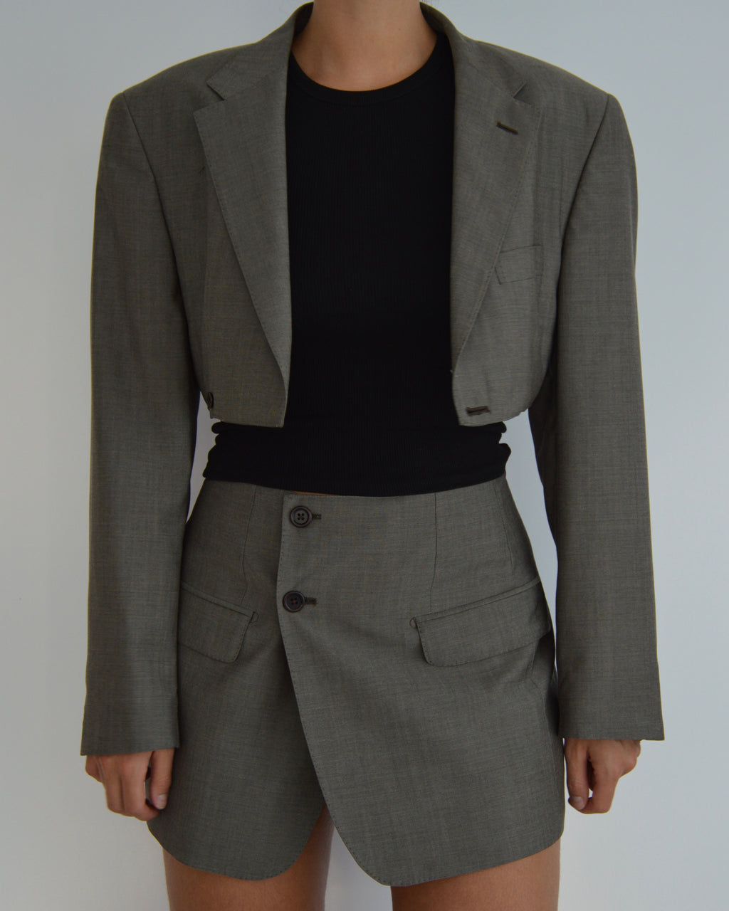 Blaset unique, confectionné à la main à partir d'un costume d'homme existant.