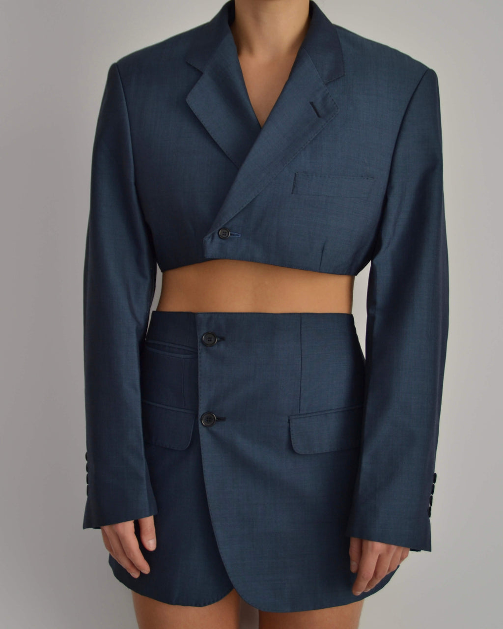Blaset unique, confectionné à la main à partir d'un costume d'homme existant.