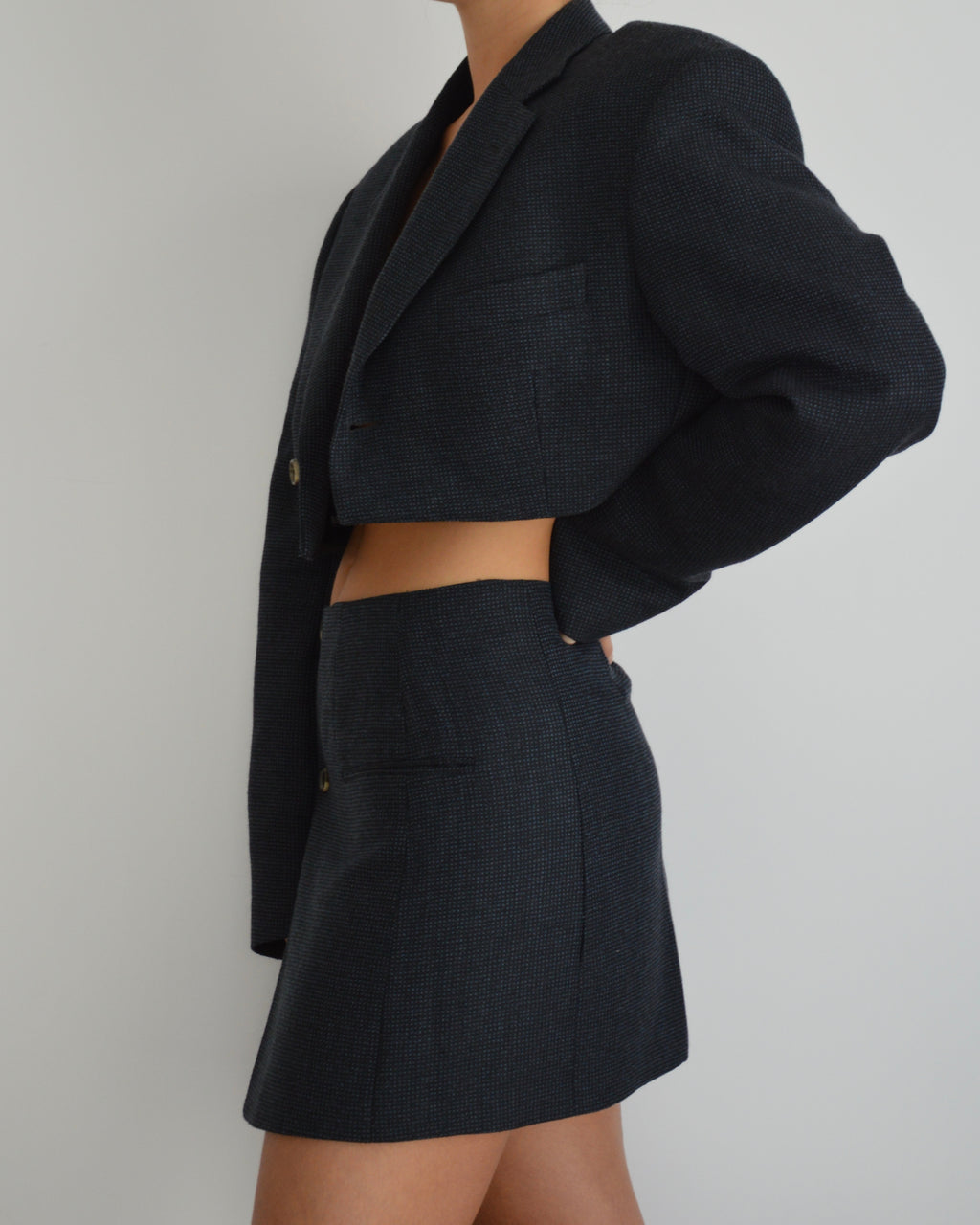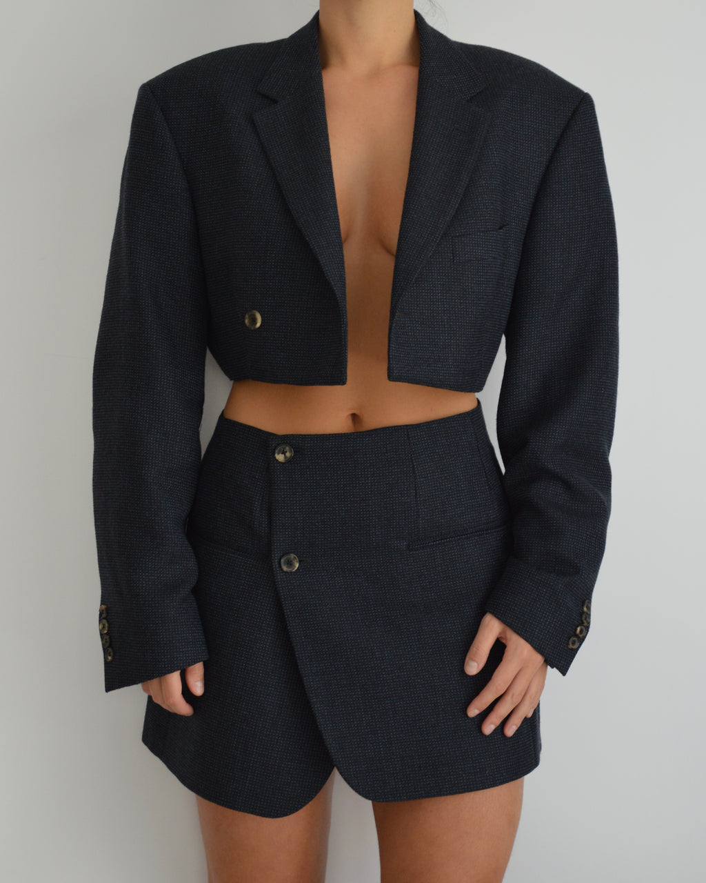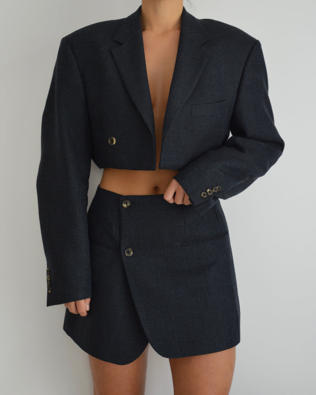Blaset unique, confectionné à la main à partir d'un costume d'homme existant.