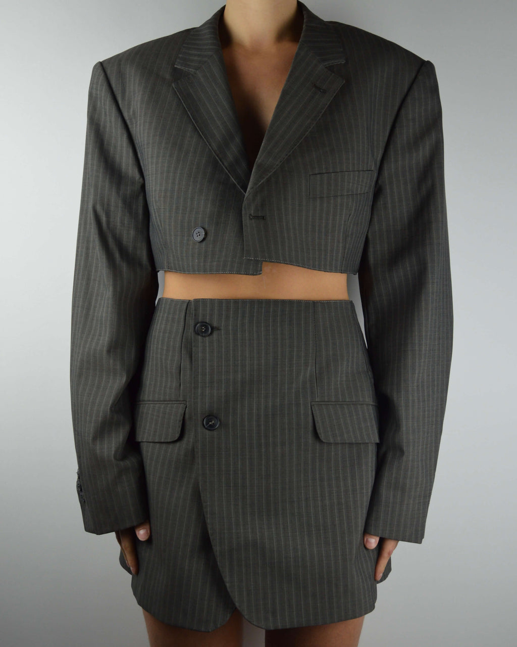 Blaset unique, confectionné à la main à partir d'un costume d'homme existant.