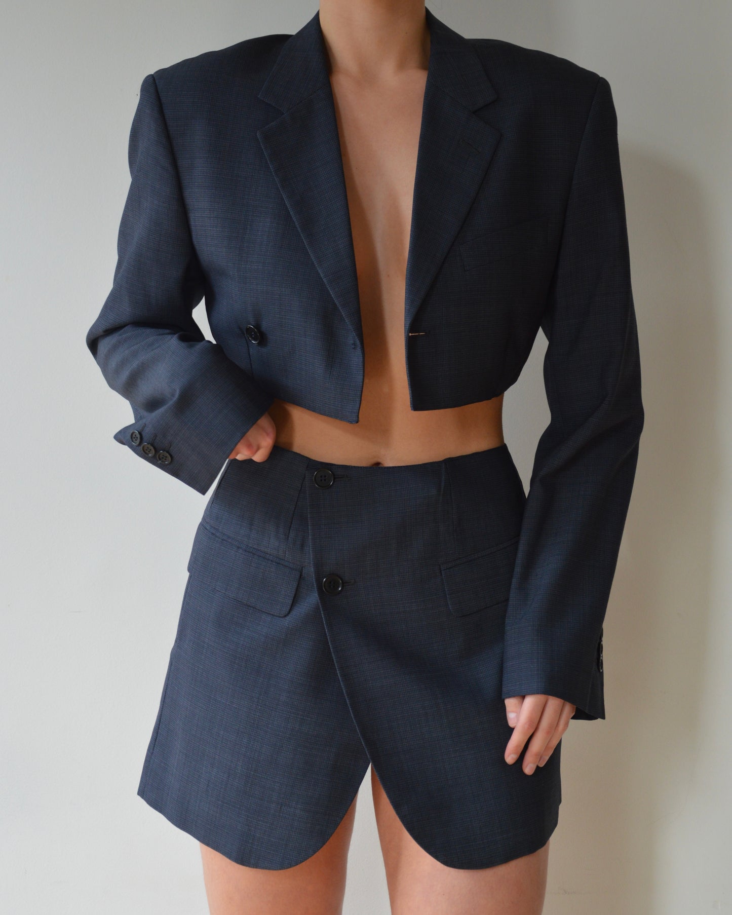 Blaset unique, confectionné à la main à partir d'un costume d'homme existant.