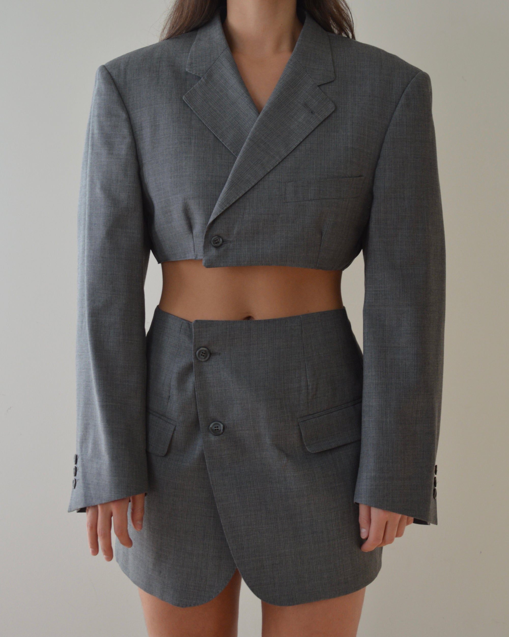 Blaset unique, confectionné à la main à partir d'un costume d'homme existant.
