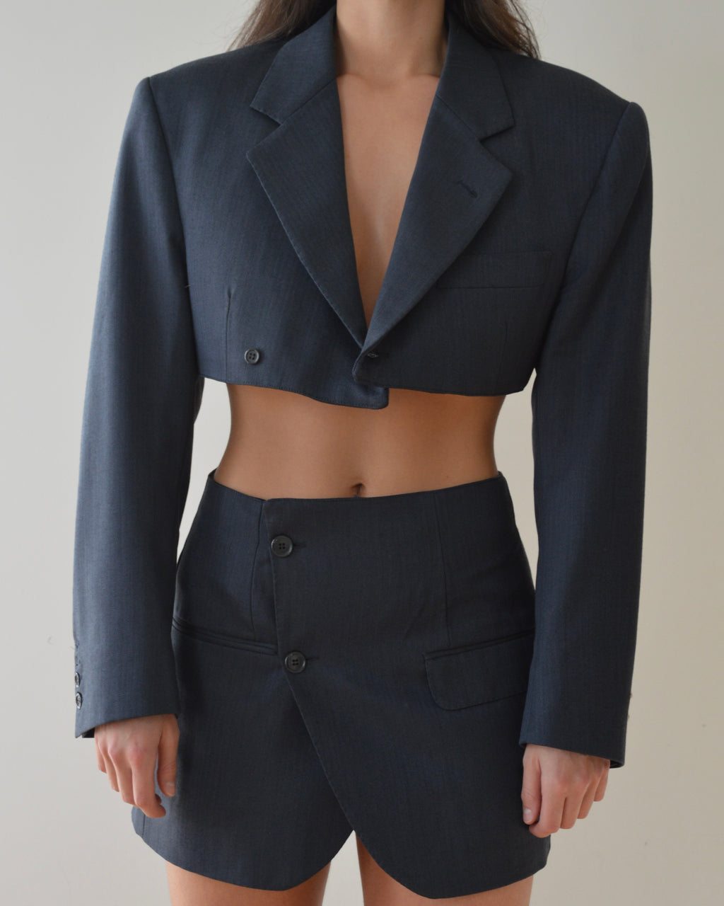 Blaset unique, confectionné à la main à partir d'un costume d'homme existant.