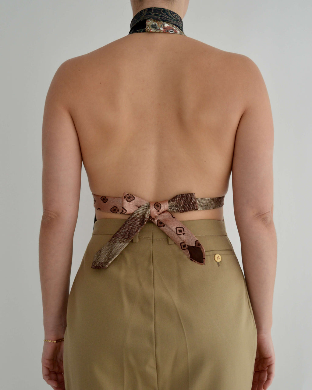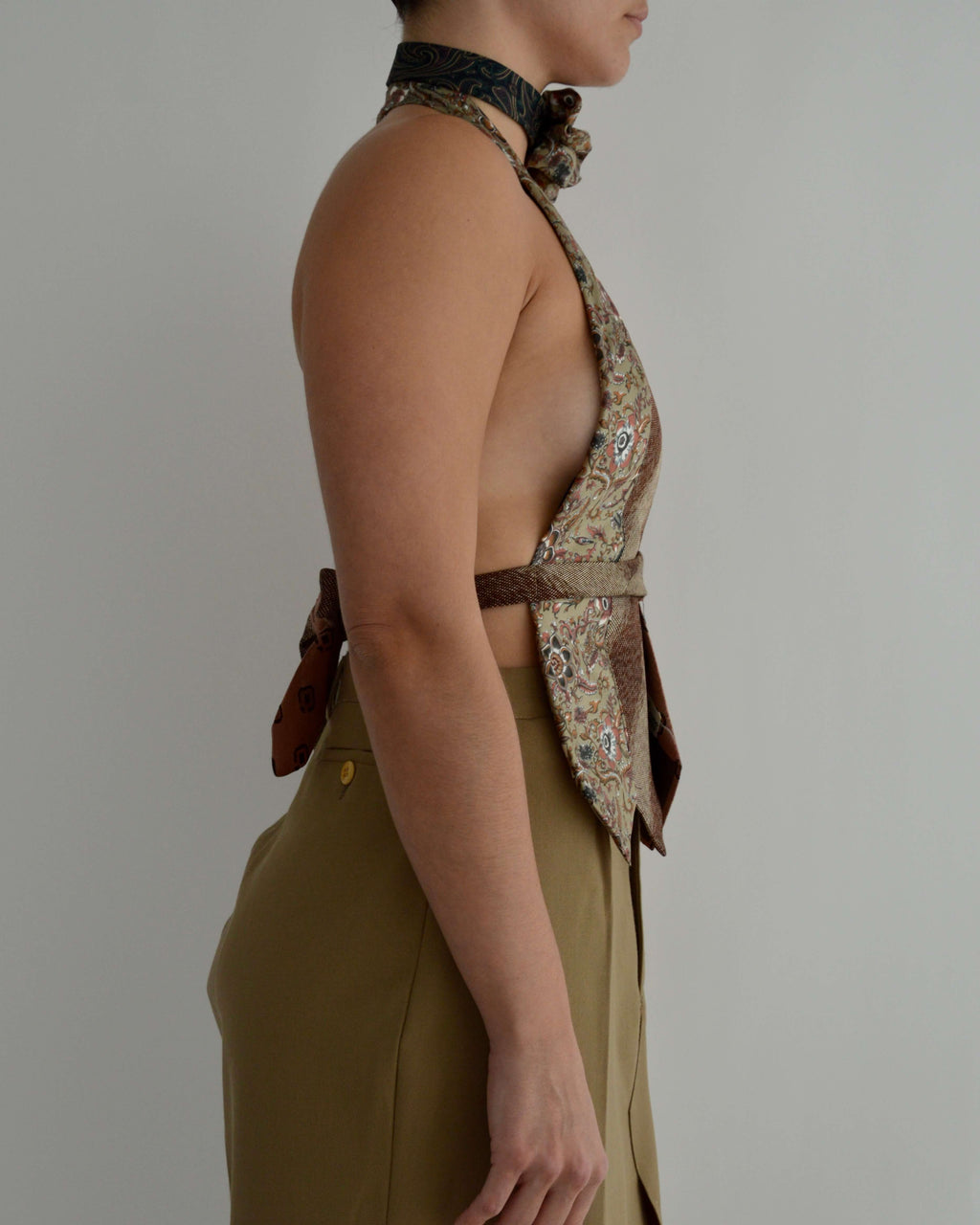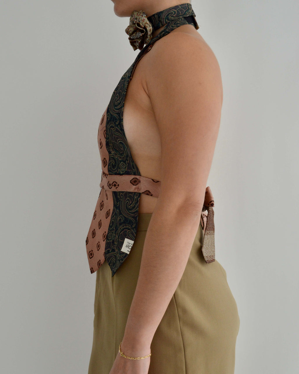 Cravate unique et ras-de-cou fleuri, confectionnés à la main à partir de quatre cravates existantes.