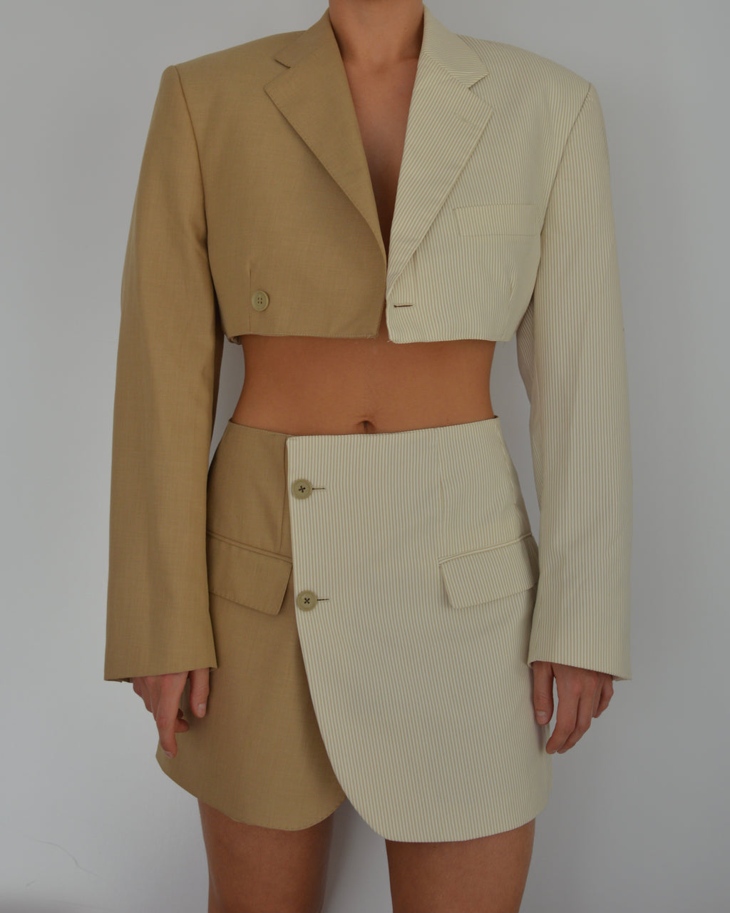 Blaset unique, confectionné à la main à partir d'un costume d'homme existant.