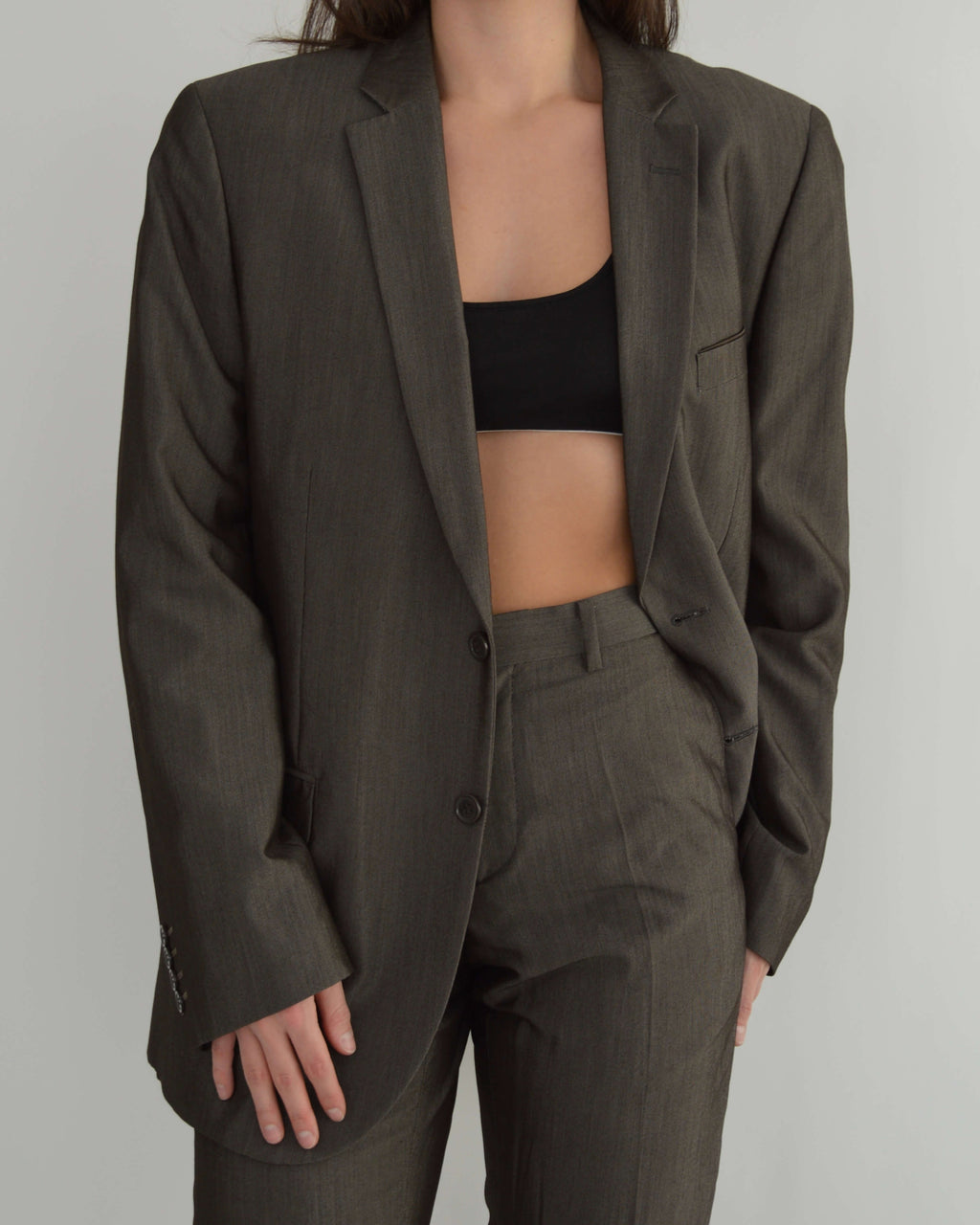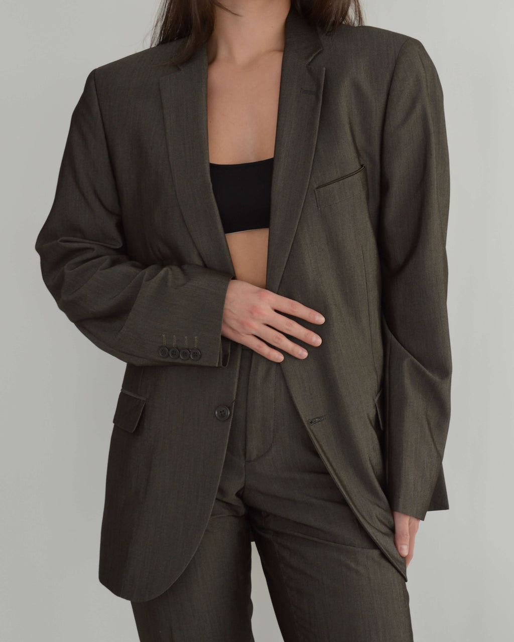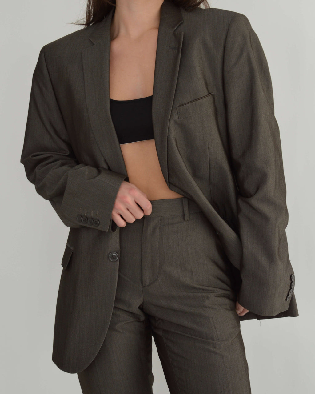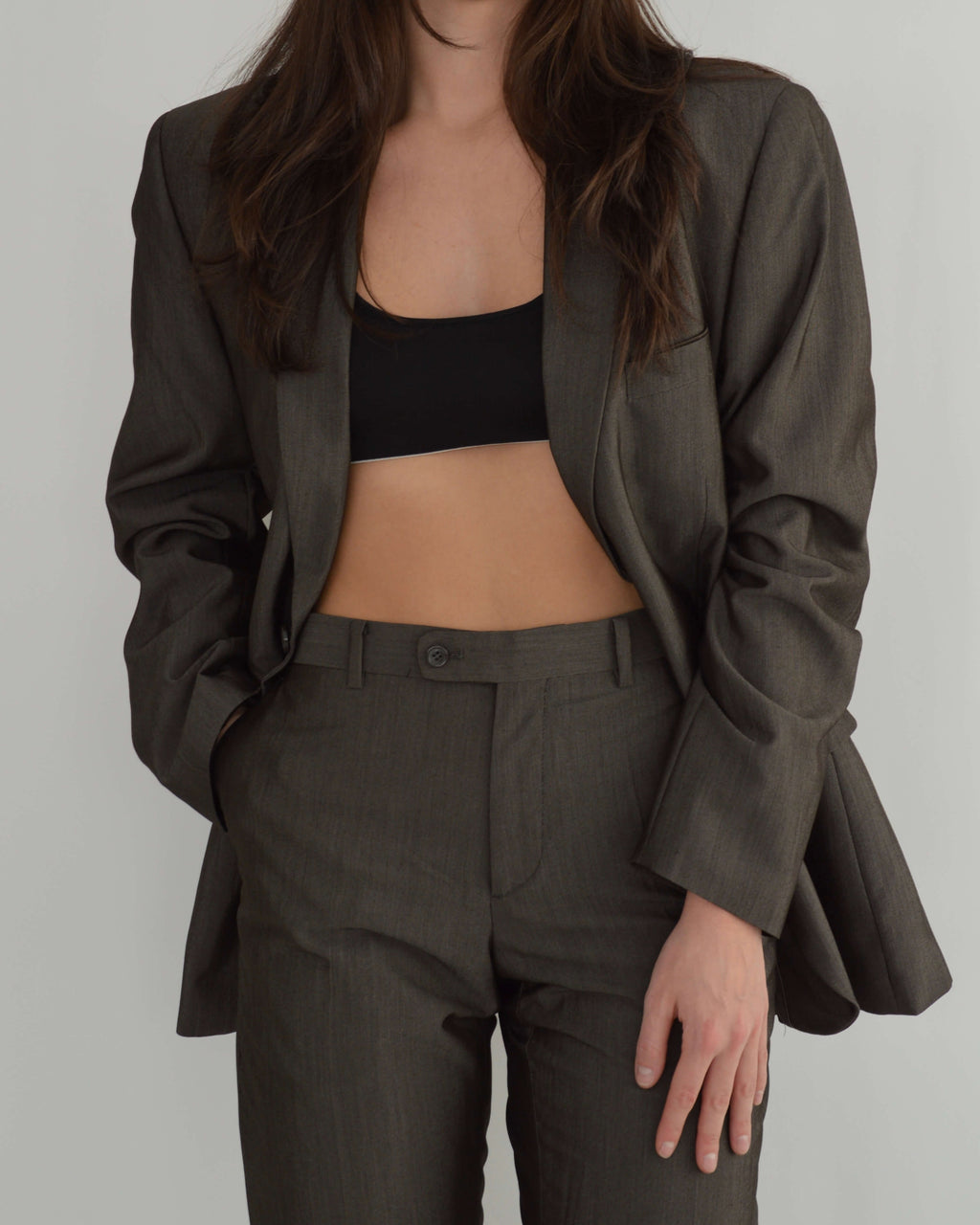 Costume retravaillé, confectionné à la main à partir d'un costume d'homme existant.