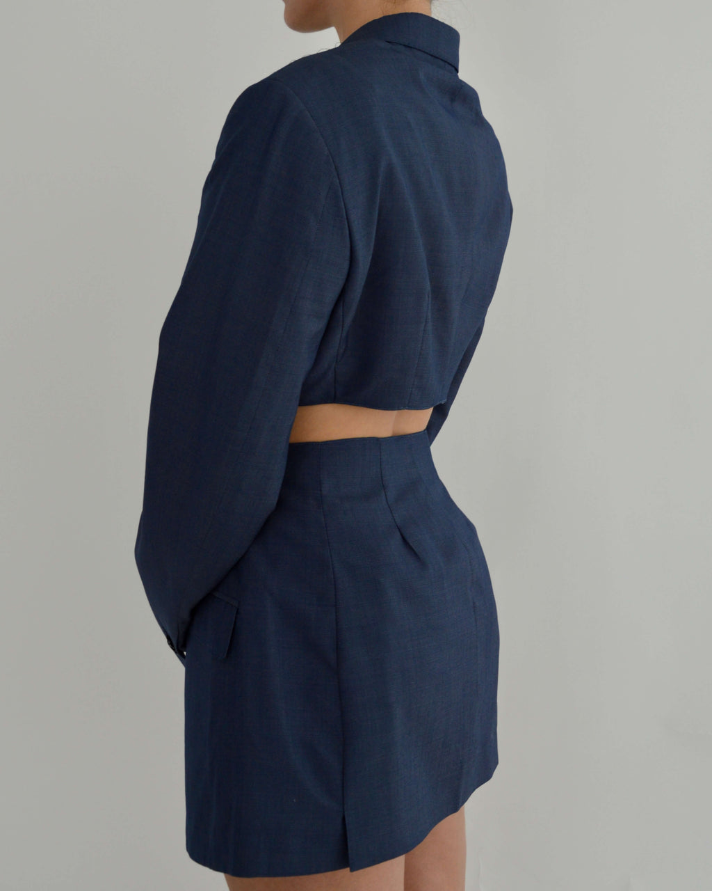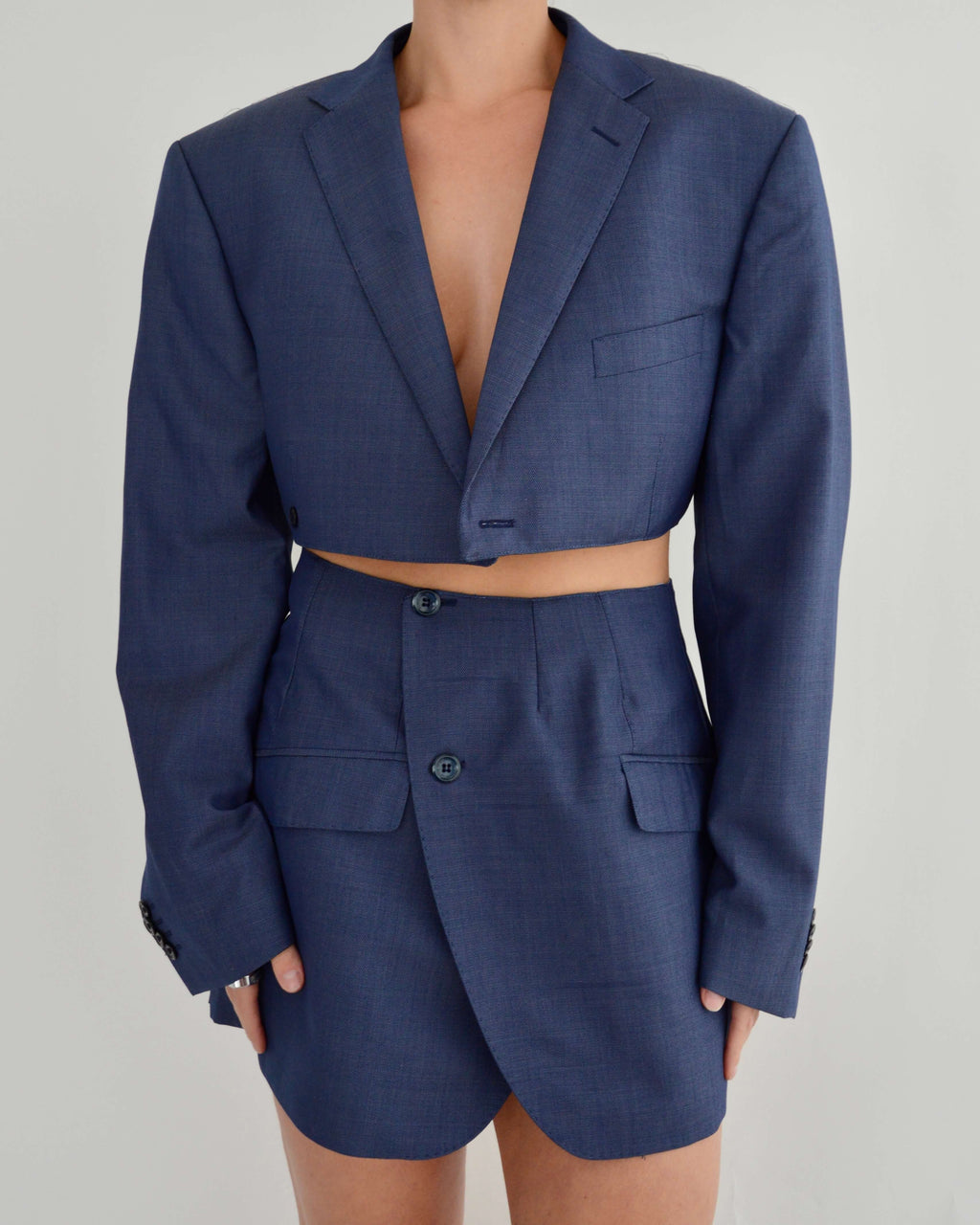 One-of-a-kind blazer set, hand-made from a men’s jackets into a two piece set. The cropped blazer is design for an oversized fit, as it comes from original menswear tailoring.