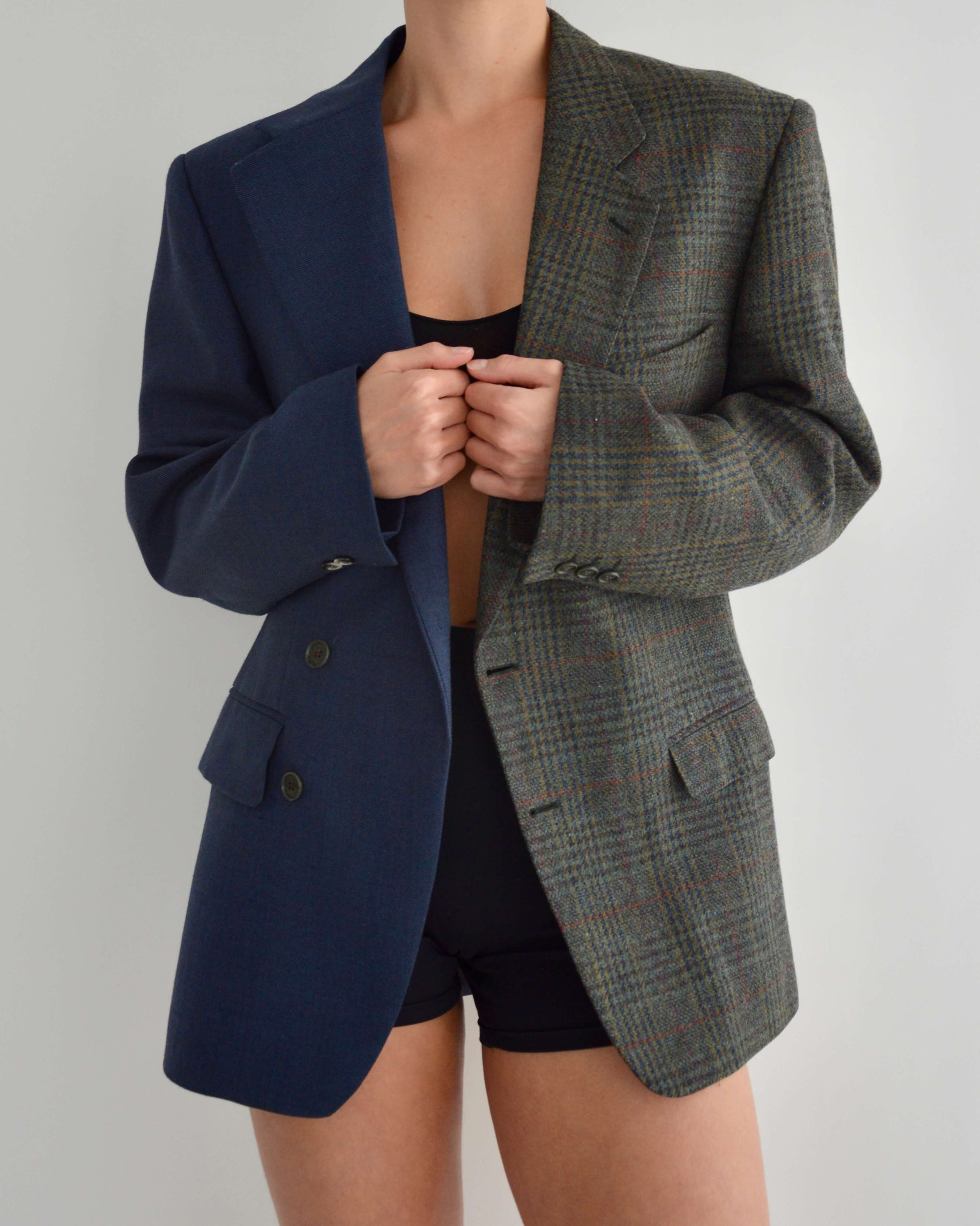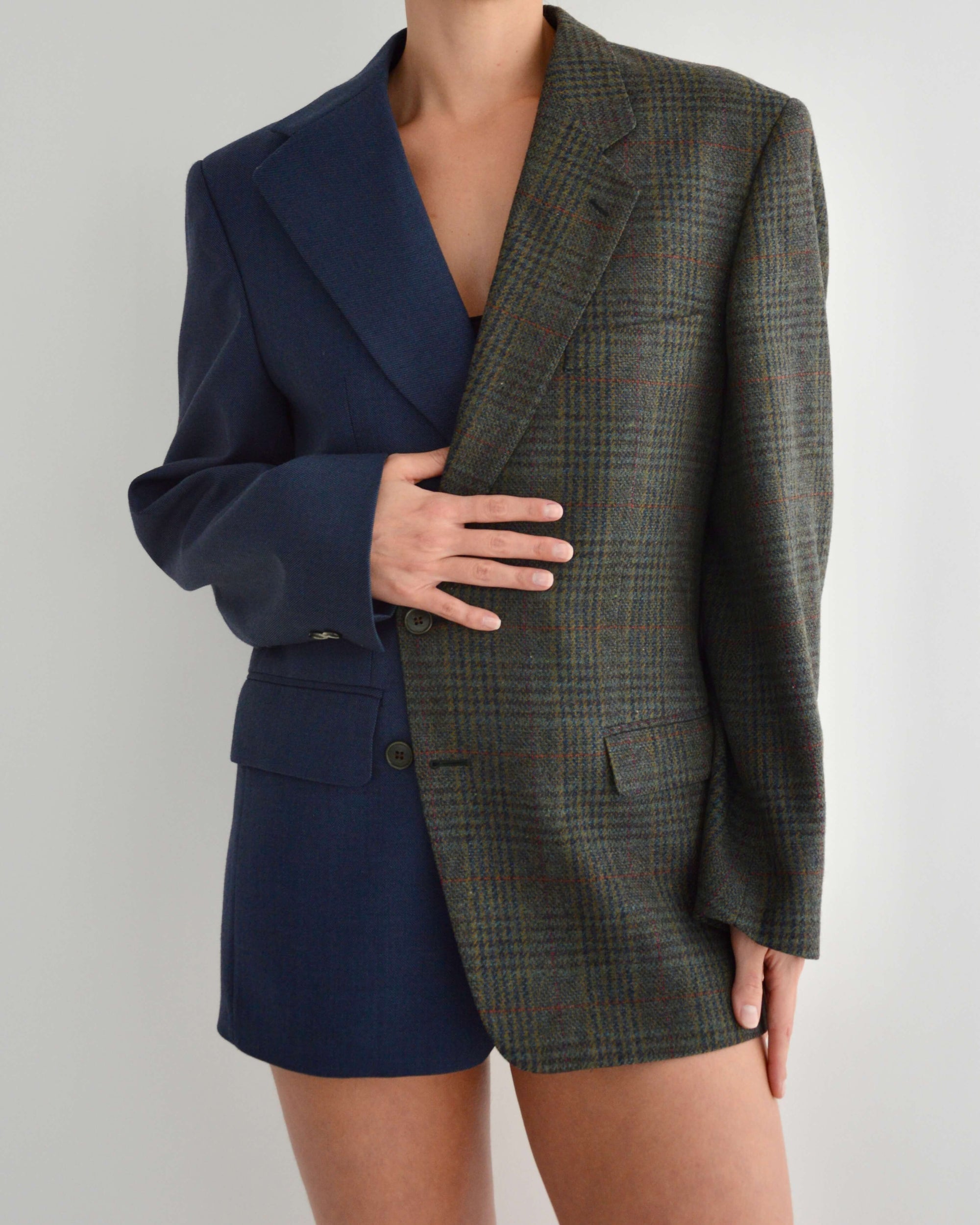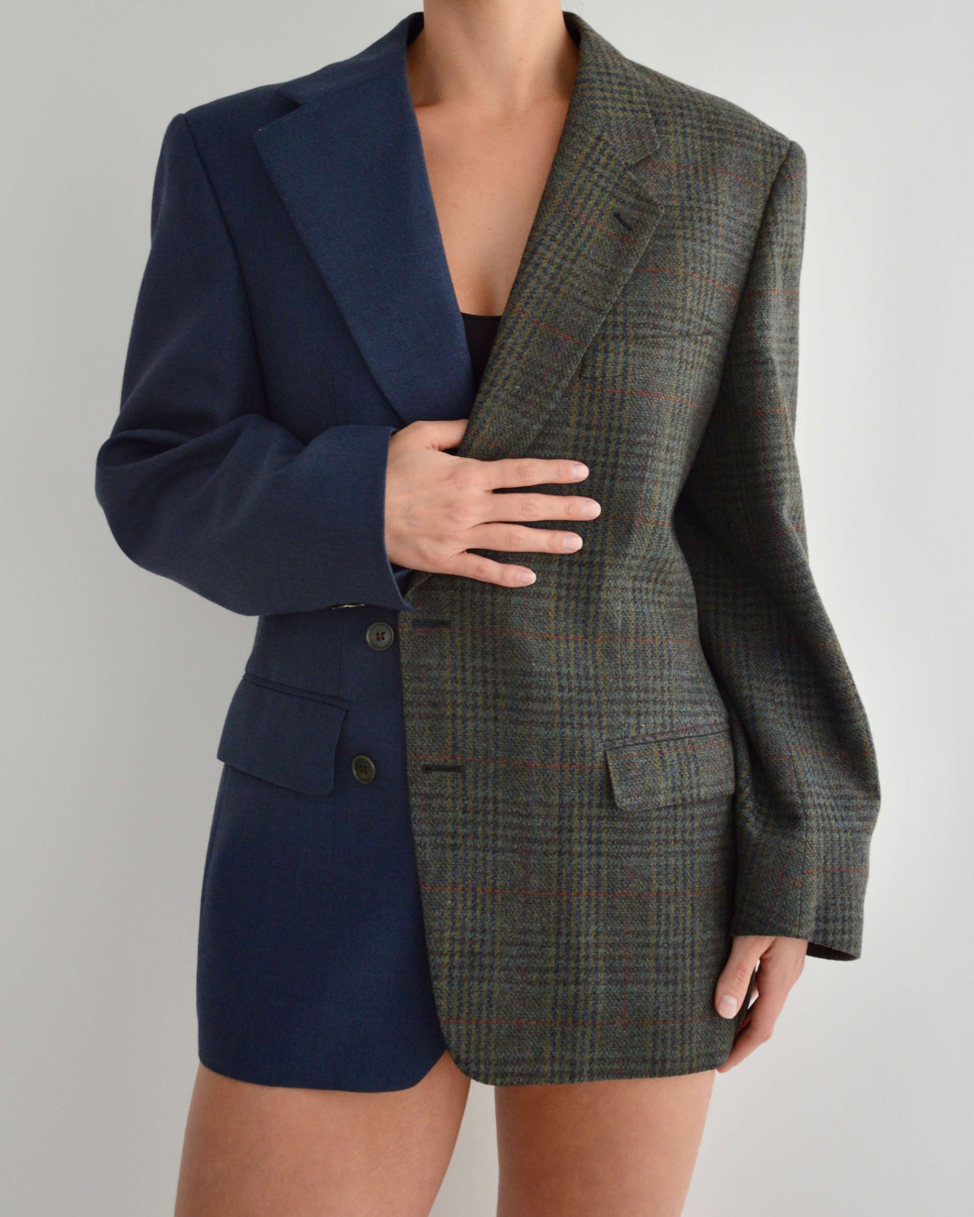 Unique Blazer hand-made from an existing man suit, combining two vintage jackets to achieve the final product. Please keep in mind that our DUO Blazer is meant to fit oversize since they were originally menswear.