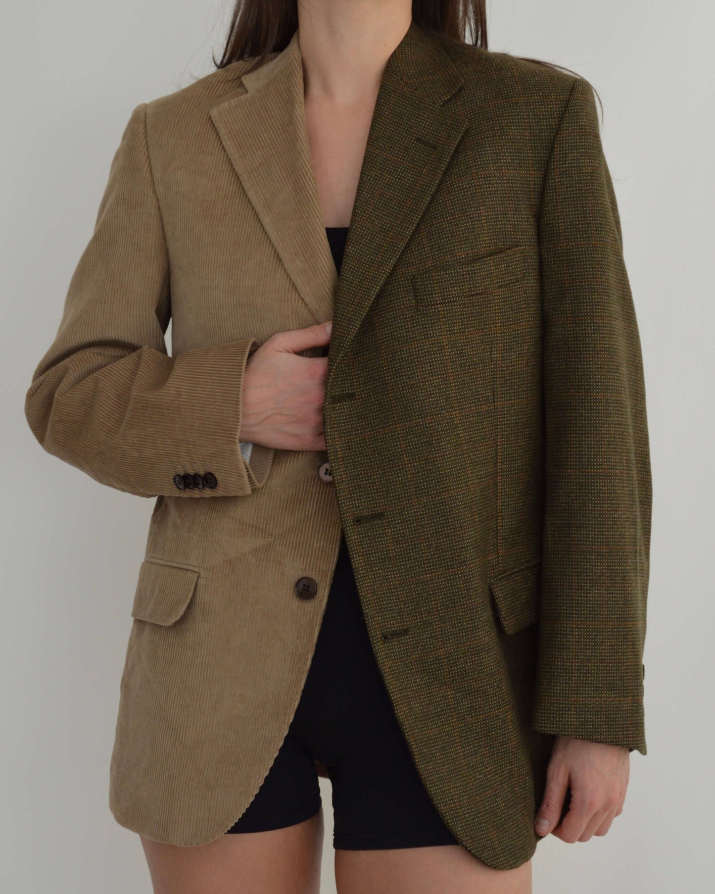 Unique Blazer hand-made from an existing man suit, combining two vintage jackets to achieve the final product. Please keep in mind that our DUO Blazer is meant to fit oversize since they were originally menswear.