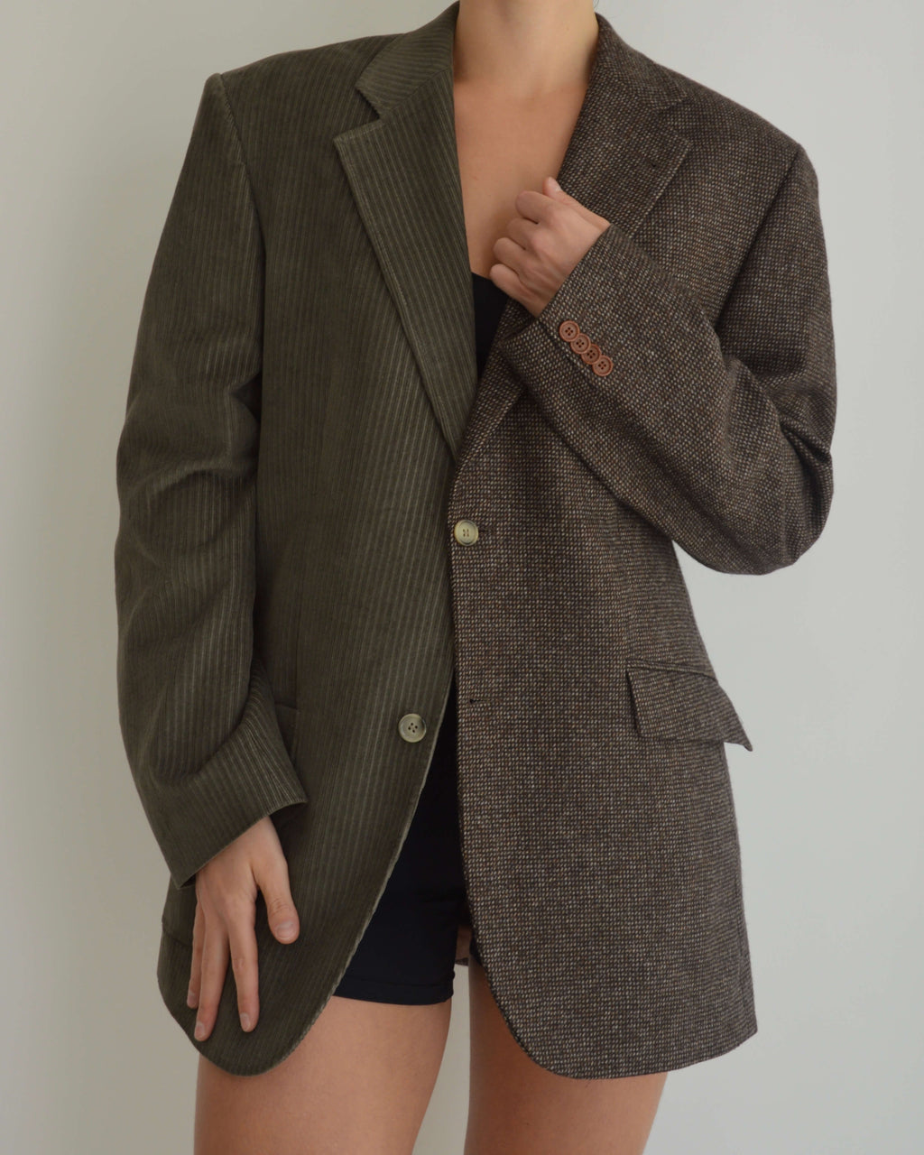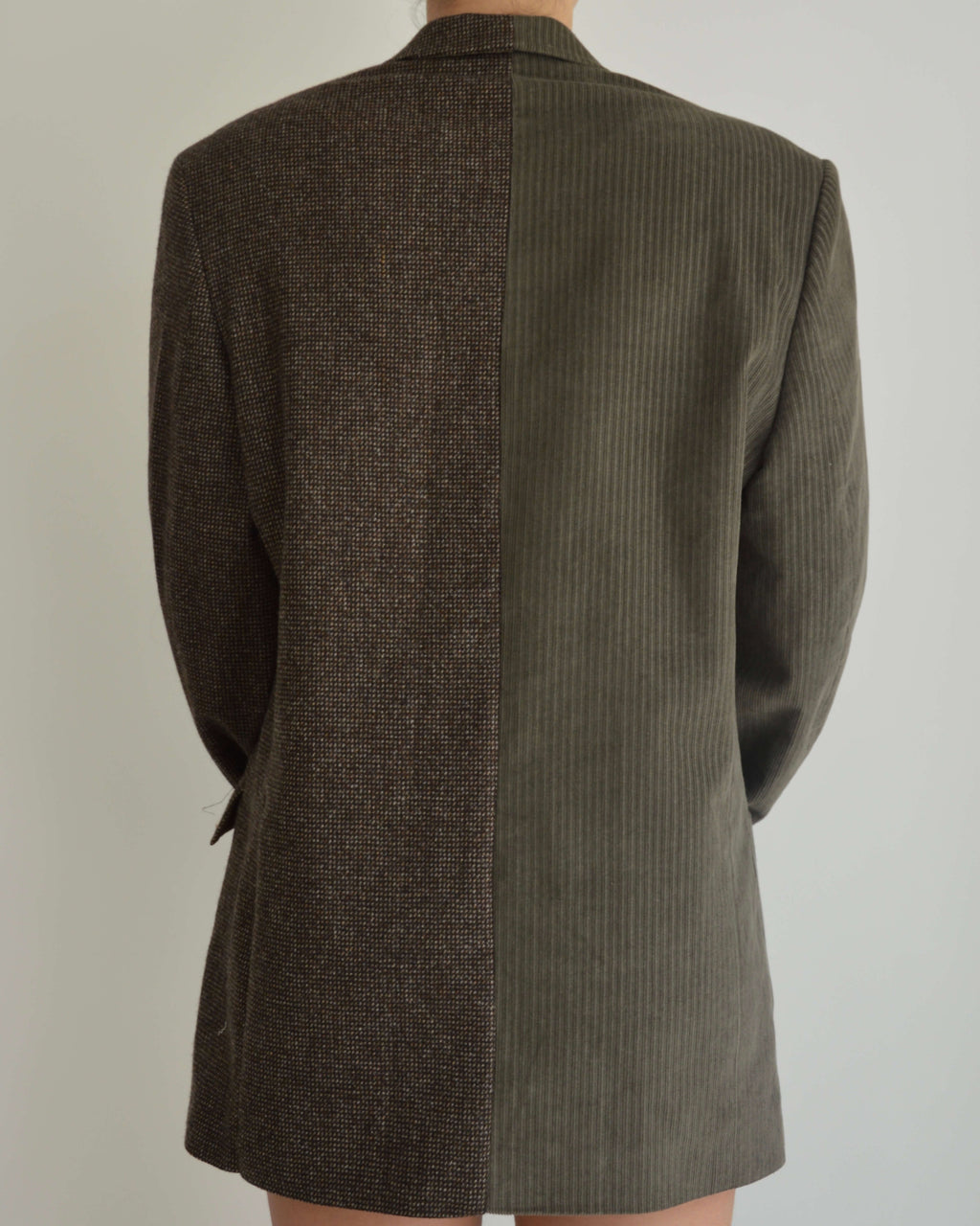 Unique Blazer hand-made from an existing man suit, combining two vintage jackets to achieve the final product. Please keep in mind that our DUO Blazer is meant to fit oversize since they were originally menswear.