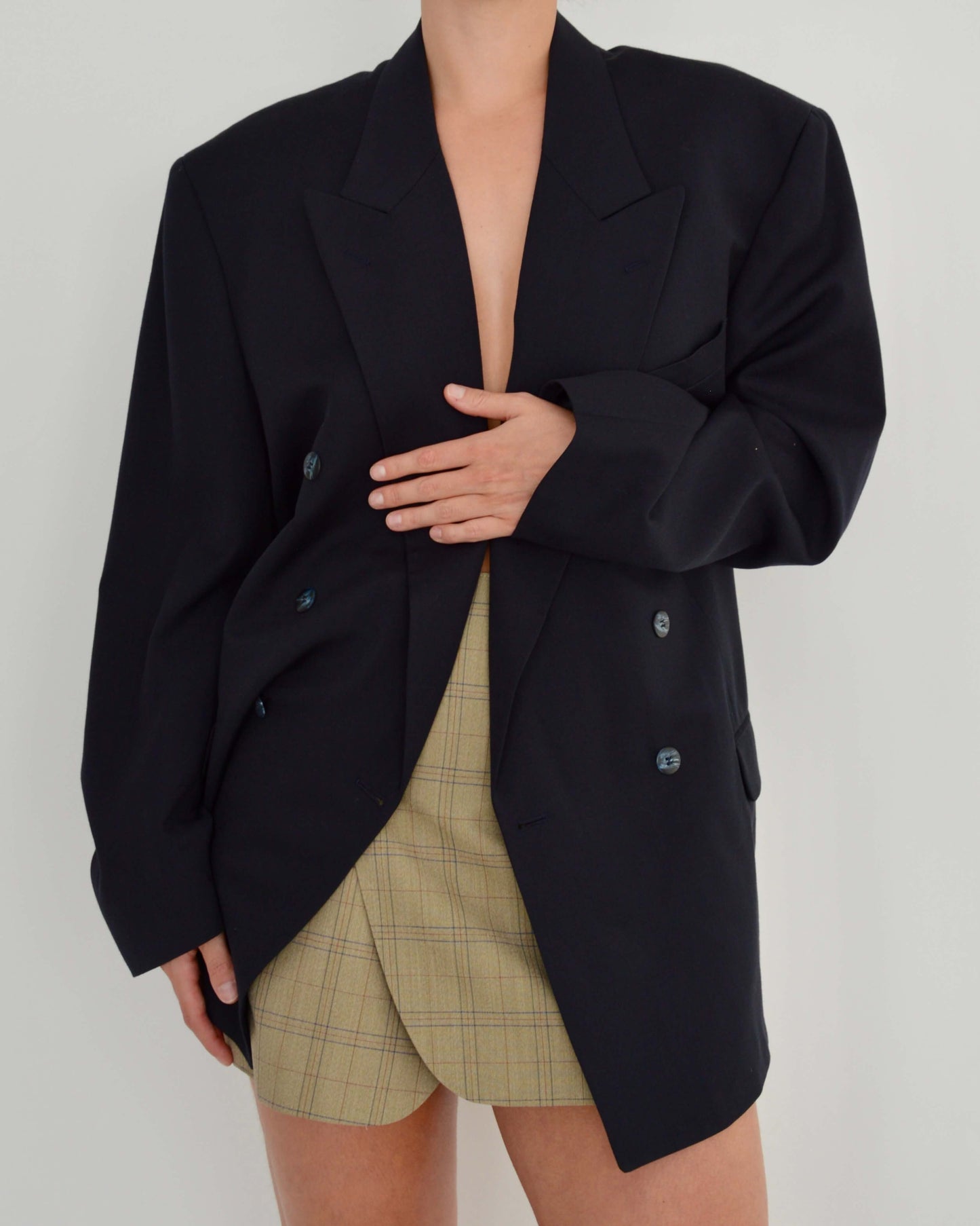Oversized winter blazer in dark navy. Finished with a doble breasted front closure with the total of 6 buttons.