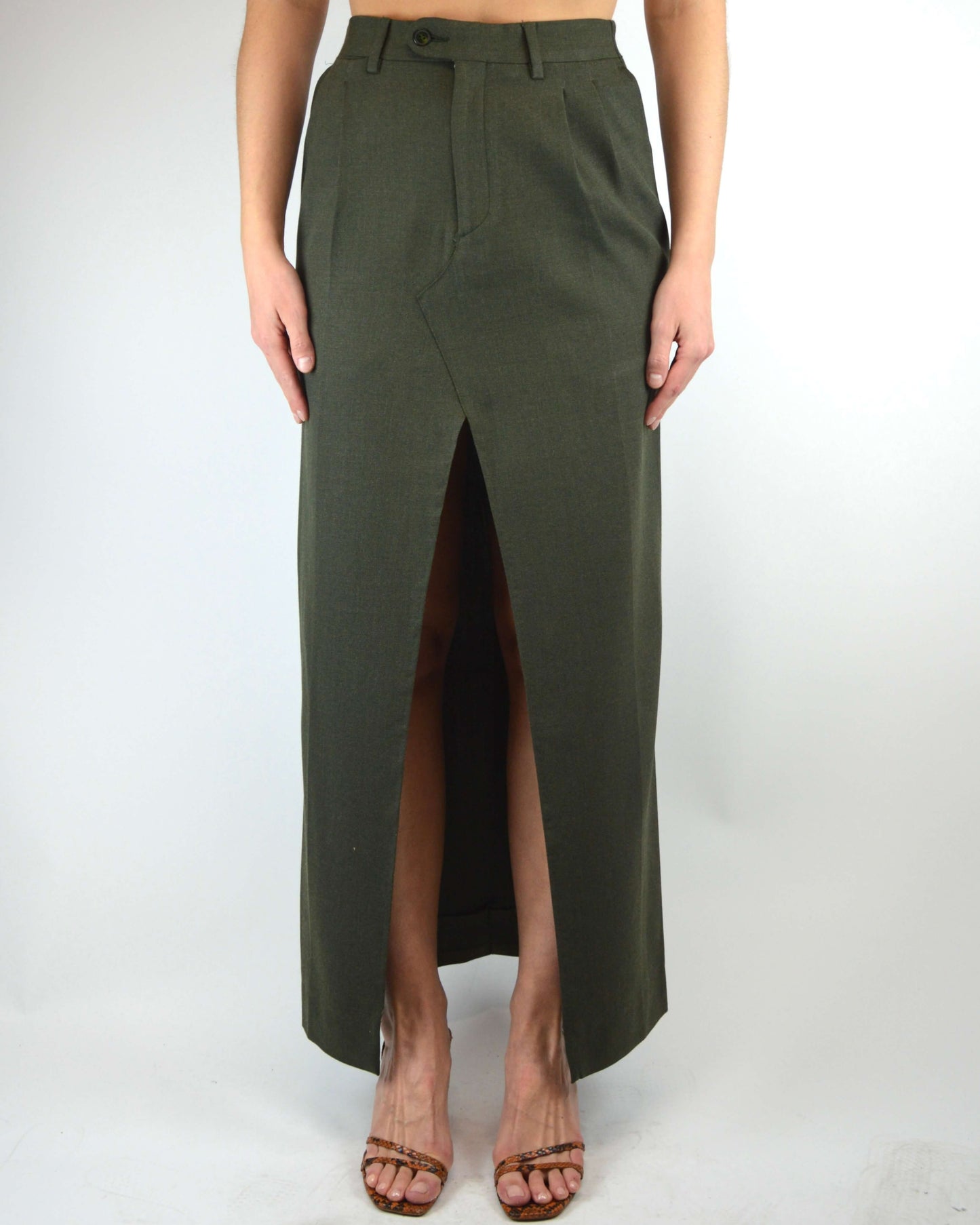 1/1 upcicled skirt reworked from man trousers. Open in the front for a confortable fit.