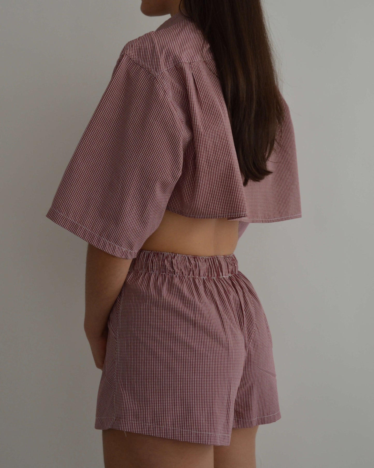 Unique set hand-made from an existing man shirt, combining two of them to achieve the final product.